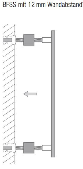 mit 12 mm Wandabstand inklusive Montagematerial und Bohrschablone.